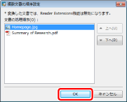 複数の文書を選択した場合:先頭の文書名に拡張子「.pdf」を付けたもの。先頭の文書がPDF文書の場合はオリジナル文書名の後ろに「(2)」を付けたもの