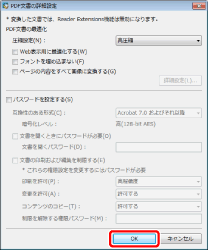 [PDF文書の詳細設定]ダイアログボックスは「文書をPDFに変換してメール送信する」のダイアログボックスと同じ設定内容ですが、設定値は別々に保持されます。「文書をPDFに変換してメール送信する」については、次を参照してください。