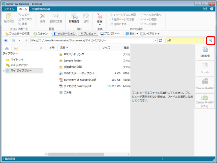 選択したライブラリーやフォルダーの中のすべてのフォルダーを検索します。ただし、Document Serverライブラリーのフォルダー名については、簡易検索バーによる検索の対象外となります(フォルダー内の文書は検索対象です)。Document Serverライブラリーのフォルダー名を検索する場合は、詳細検索で検索してください。