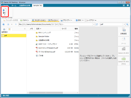 ツールバーのツールボタンでも同じ操作ができます。Desktop Browserのツールバーにツールボタンが表示されていない場合は、次を参照して表示させてください。