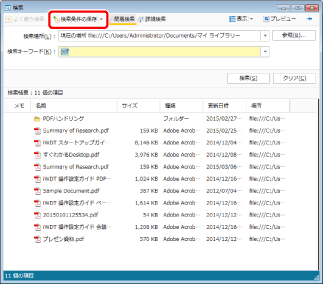 保存した検索条件を指定して検索する方法については、次を参照してください。