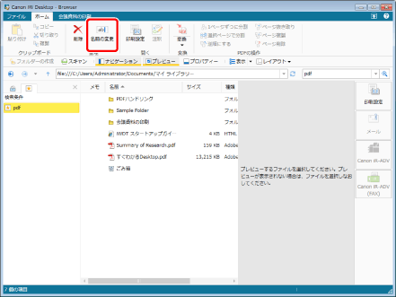ツールバーのツールボタンでも同じ操作ができます。Desktop Browserのツールバーにツールボタンが表示されていない場合は、次を参照して表示させてください。