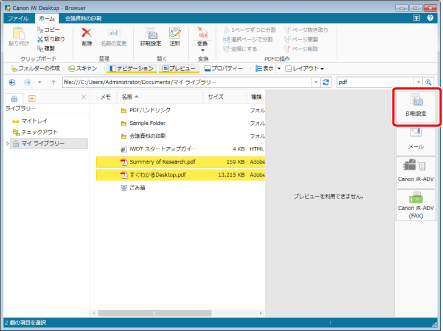 ツールバーのツールボタンでも同じ操作ができます。Desktop Browserのツールバーにツールボタンが表示されていない場合は、次を参照して表示させてください。