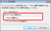 デバイス側でアクセス番号管理が行われていない場合は、[デバイスから取得する]を選択して、アクセス番号には何も入力せずに[OK]をクリックします。