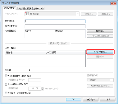 ファクスドライバーのファクス送信設定ダイアログボックスは、使用するファクスドライバーによって異なる場合があります。