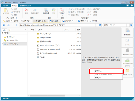 をクリックして、[変更]を選択しても同じ操作ができます。リボンやツールバーにボタンが表示されていない場合は、次を参照して表示させてください。 |