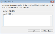 [コメントの入力]ダイアログボックスは、マイトレイの文書を選択した状態でリボンの