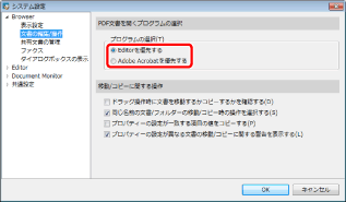 [Editorを優先する]を選択した場合、Desktop BrowserでPDF文書を扱う場合に次のような動作が可能になります。
