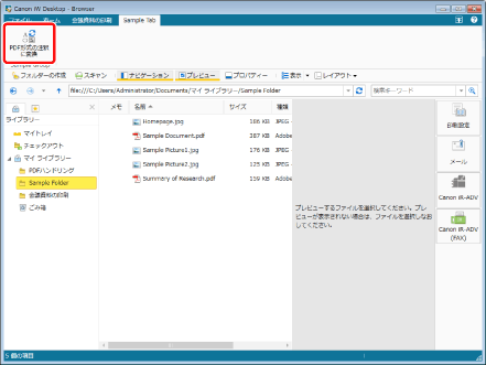 ツールバーのツールボタンでも同じ操作ができます。Desktop Browserのツールバーにツールボタンが表示されていない場合は、次を参照して表示させてください。