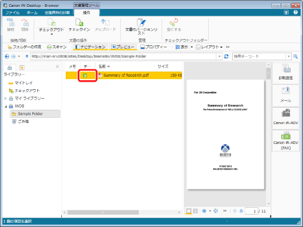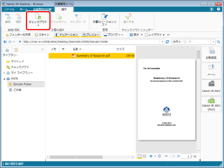 個人ライブラリー/ネットワークライブラリーに保管されている文書はチェックアウトできません。