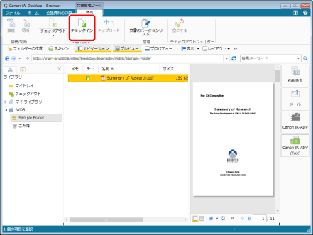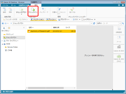 未接続のDocument Serverライブラリー内の文書を選択する場合は、ライブラリーへの接続が必要です。接続方法については、次を参照してください。