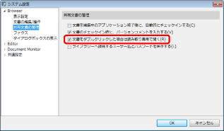 [システム設定] > [Browser] > [共有文書の管理] > [文書をダブルクリックした場合は読み取り専用で開く]