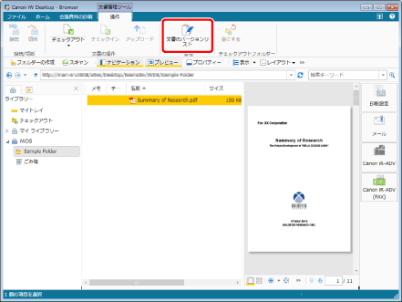 未接続のDocument Serverライブラリーを選択した場合は、ライブラリーへの接続が必要です。接続方法については、次を参照してください。