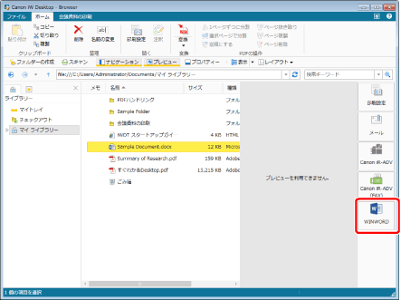 アプリケーションアウトプットボタンから文書を編集するためには、あらかじめアウトプットバーに外部アプリケーションが登録されている必要があります。アウトプットバーへの外部アプリケーションの登録については、次を参照してください。