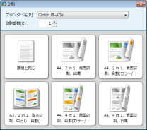 [プリンター名]、[印刷部数]を設定し、使用するテンプレートボタンをクリックします。