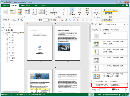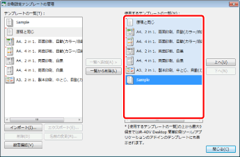 詳細ウィンドウの[テンプレート]タブで、テンプレートのボタンを上下にドラッグ&ドロップして表示順を変更することもできます。