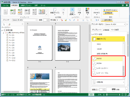 サイズの異なる用紙を組み合わせて印刷するには、この機能に対応したプリンターを選択する必要があります。