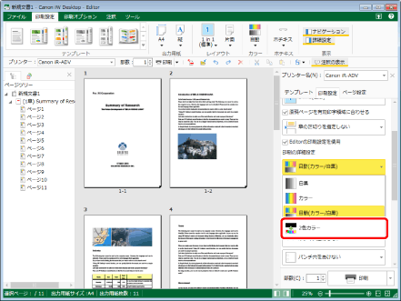 2色カラーモードを選択している場合、章、およびページごとにカラーモードの設定はできません。