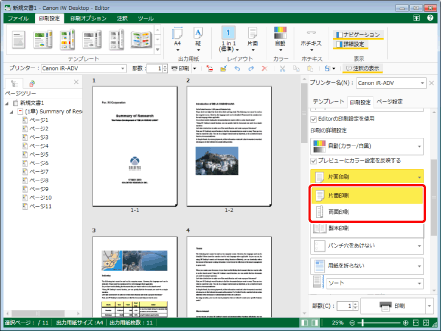 詳細ウィンドウ > [印刷設定]タブ > [印刷の詳細設定]で、[片面印刷]、または[両面印刷]を選択します。