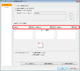 [ヘッダー/フッターの詳細設定(印刷ページ)]ダイアログボックスが表示されます。