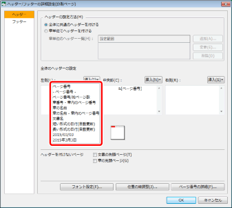 [ヘッダー/フッターの詳細設定(印刷ページ)]ダイアログボックスに戻ります。