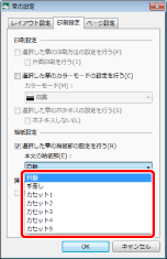 [本文の給紙部]の選択項目は、[プリンター]で選択しているプリンターに装着されている給紙部の種類に応じて異なります。