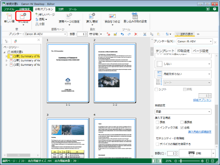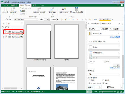 文書全体に合紙を挿入する設定かつ、[挿入する用紙の設定]ダイアログボックスで、[合紙に原稿を印刷する]にチェックマークが付いている