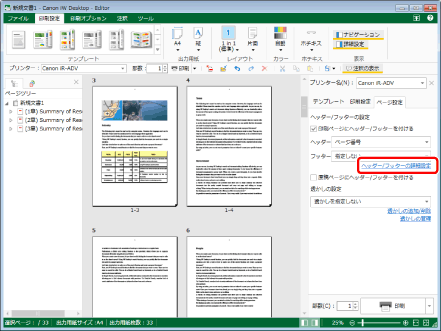 (原稿ページのヘッダー/フッターの詳細設定)をクリック