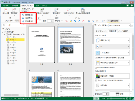 右クリックして、[原稿ページの回転]から回転方法を選択