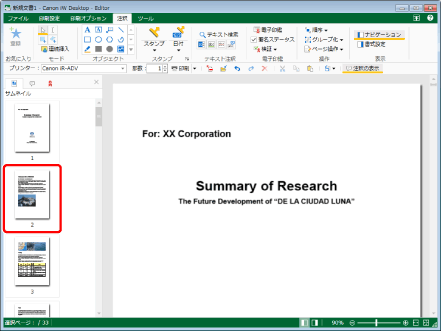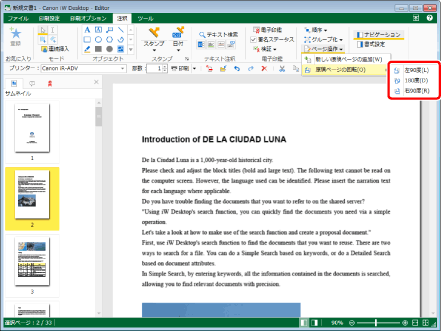 [注釈]タブのコマンドを使用してページを回転させます。