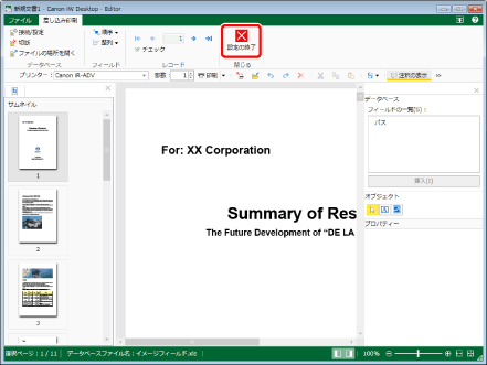データベースとの接続情報が保存されたIWB文書を開いた場合は、差し込み印刷設定モードを起動すると、自動的にデータベースに接続され、差し込みデータが更新されます。