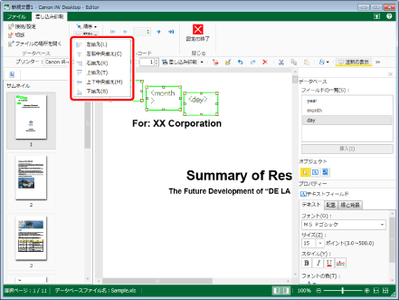 Desktop Editorの差し込み印刷設定モードで挿入したフィールドの位置を揃えられます。