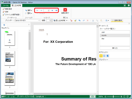 差し込みフィールドに表示されている差し込みデータの、他のレコードを表示できます。