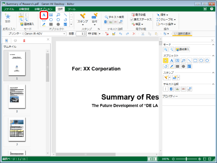 ツールバーのツールボタンでも同じ操作ができます。Desktop Editorのツールバーにツールボタンが表示されていない場合は、次を参照して表示させてください。