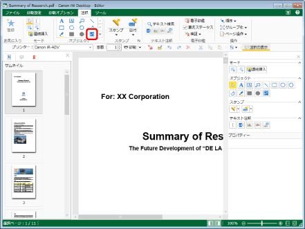 ツールバーのツールボタンでも同じ操作ができます。Desktop Editorのツールバーにツールボタンが表示されていない場合は、次を参照して表示させてください。