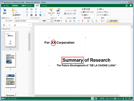クリックした位置がテキストの編集領域だった場合、注釈が選択されてテキストが入力できる状態になります。