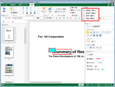 Desktop Editorを使用して、スタンプやテキストなどの注釈の挿入や移動を行う際に、注釈が重なりあう場合があります。この場合、必要に応じて重なり順を変更できます。