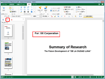 初期設定では、注釈モードのナビゲーションウィンドウには、[サムネイル]タブが表示されます。
