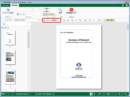 (グループ化)をクリックして、[グループ解除]を選択します。