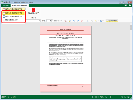 次のページは、余白をつめる対象から除外されます。そのため、[指定した領域を削除する]を選択していても、編集対象外の領域に設定した領域が削除されません。この場合、削除したいオブジェクトを手動で削除してください。