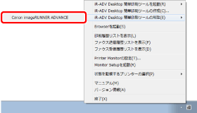 (メイン)を右クリックして、[iR-ADV Desktop 簡単印刷ツールの削除]を選択し、削除する簡単印刷ツールを選択します。