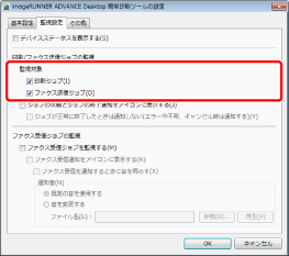 印刷/ファクス送信ジョブ状態の監視を表示し、タスクバーに状態表示アイコンを表示するには、デバイスがiW Desktop対応デバイス、または標準MIB対応デバイスに対応している必要があります。
