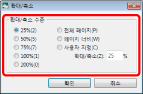 확대 비율을 1% 단위로 지정할 수 있습니다. 상한선(200%)보다 크거나 또는 하한선(5%)보다 작은 값을 입력하는 경우, 페이지가 자동으로 지정한 값에 가장 가까운 확대 비율로 표시됩니다. 소수점이 포함된 숫자를 입력하면 숫자가 이전에 설정된 값으로 자동으로 변경됩니다.