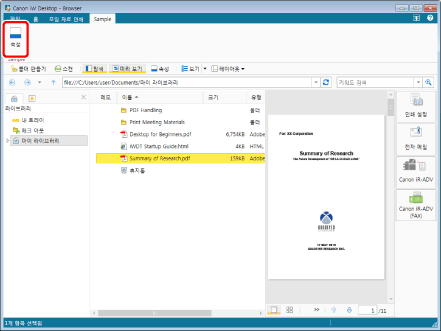 또한 이 작업은 도구 모음의 도구 버튼들을 이용해 수행할 수도 있습니다. Desktop Browser의 도구 모음에 도구 버튼들이 표시되지 않는다면 아래의 방법에 따라 표시할 수 있습니다.