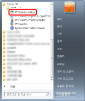 Windows 8/Windows 8.1의 경우 [시작] 화면에서 [iW Desktop Editor] 타일을 클릭합니다. 화면이 바탕 화면으로 전환되고 Desktop Editor가 시작됩니다.