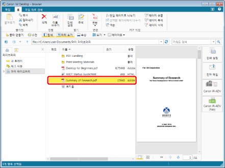 11개 이상의 문서를 선택한 상태로 [열기] 또는 [주석]를 클릭하는 경우, 파일 목록 보기 창에서 목록 상단에 표시되는 첫 번째 문서만 Desktop Editor에서 열립니다.