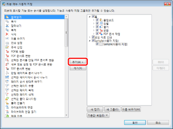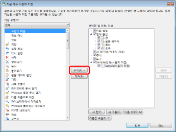 리본 메뉴에 추가된 그룹에 [리본 메뉴 사용자 지정] 대화 상자의 왼쪽 목록에서 선택하여 명령을 추가할 수 없습니다.