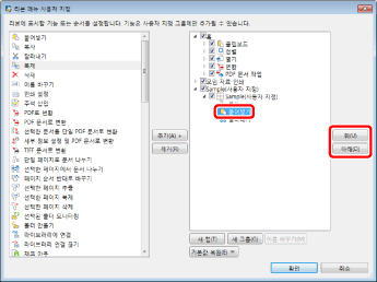 기본적으로 표시되는 탭의 그룹 명령 표시 순서는 변경할 수 없습니다.