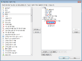 기본적으로 표시되는 리본 메뉴 명령은 삭제할 수 없습니다.