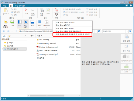 이 섹션에서는 도구 모음에 표시되는 버튼을 크기가 작은 버튼으로 변경하는 방법에 대해 설명합니다.
